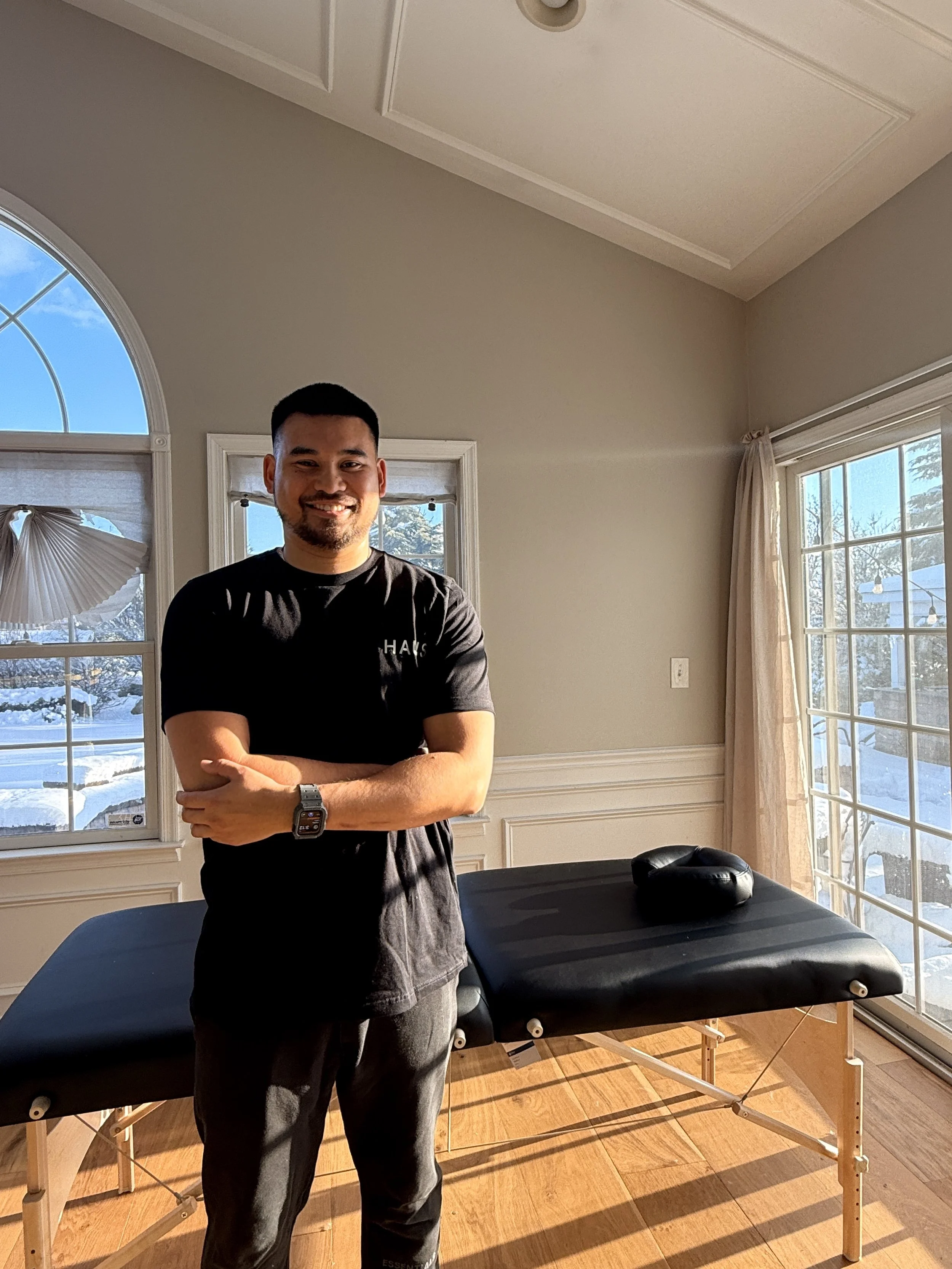 He focuses on improving mobility, relieving tension, and helping people feel stronger and more confident in their bodies one session at a time.